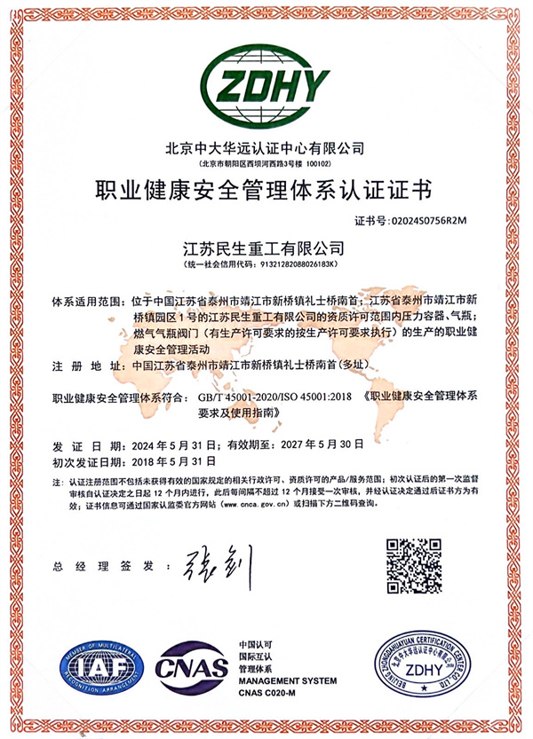 ISO45001職業(yè)健康安全管理體系認(rèn)證證書